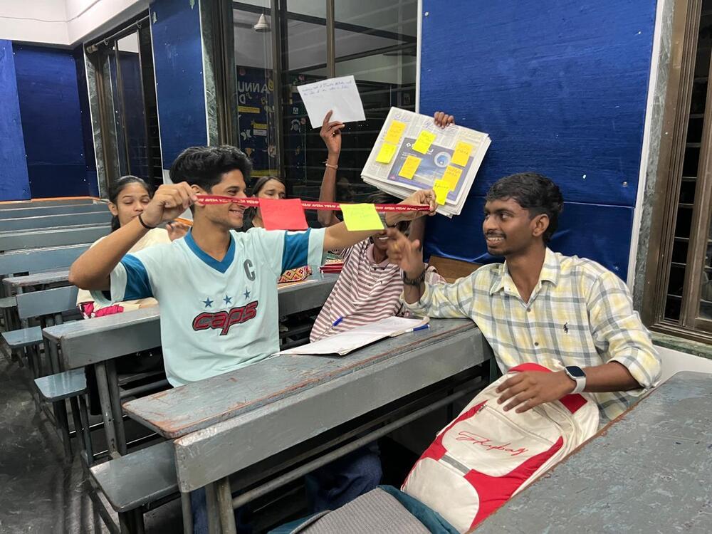 On Day 5 of the CMCA Catalyze Programme: The students gathered excitedly as it was their last session followed by the valedictory ceremony. Both Ms. Brinda Ganesh and Ms. Parinda Kenia were present. They were joined by Prof. Dr. Lata Krishnan and Assoc. Prof. Dr. Anaya Markendeya. Principal Dr. Eknath Zhrekar was present for this session. Feedback forms were distributed to all the students to gather information from the students regarding the CMCA Catalyze series. The questions aimed at mapping the transformation in youth thinking and attitude through the workshop series. Students were invited to share their reflections and many of them came forward to express their feelings and learnings from the programme. It was heartening to see that the programme had been not only well received but also helped students understand their civic rights and responsibilities. It helped them become responsible citizens by being the change makers.