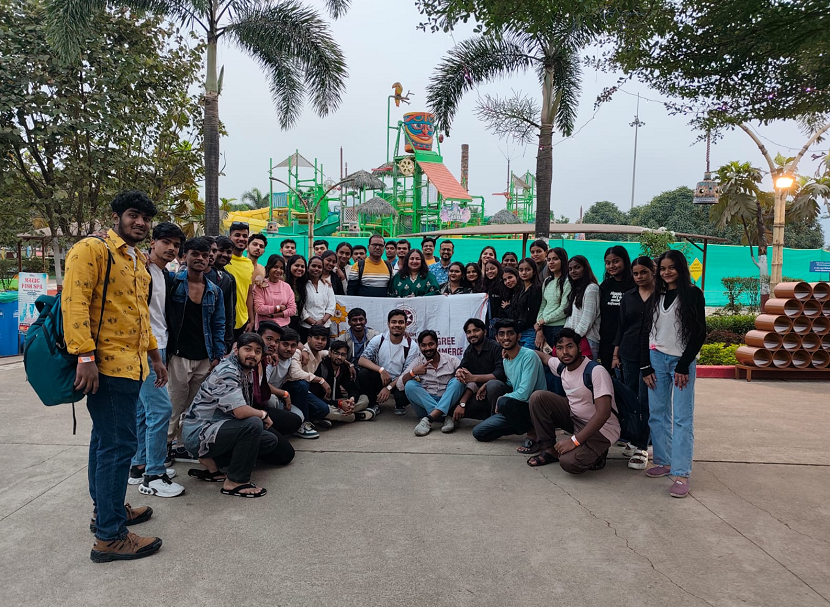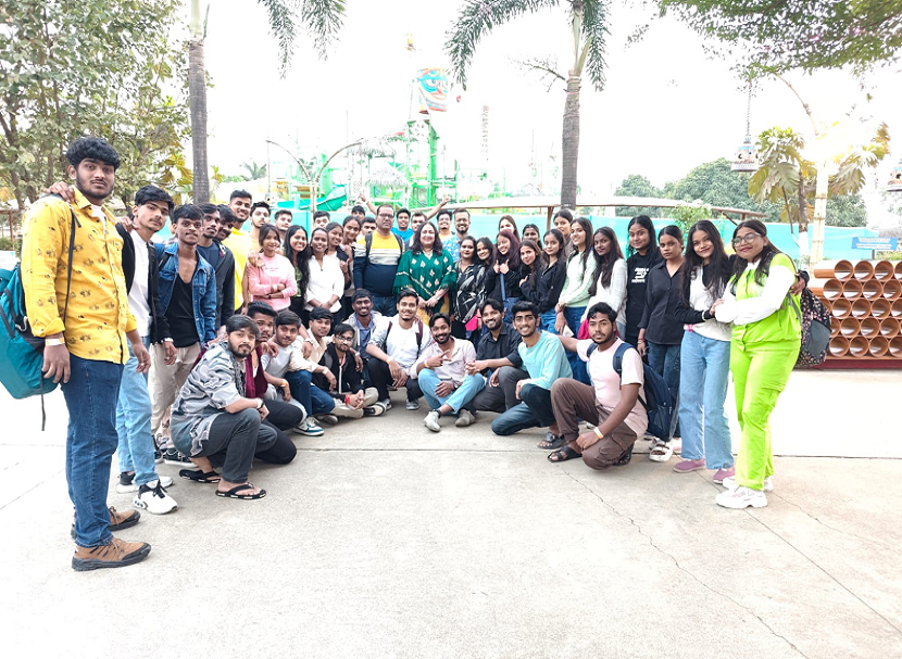 On the morning of 19th January 2026 students assembled in the college at 7.00 am. They carried lycra clothing to wear at the water park. Picnic nick-nacks, bluetooth speakers, caps, goggles and stylish picnic wear clad cheerful students hustled and bustled around the college MP Hall. Pending student undertaking forms were collected and the file kept in the college. Breakfast packets for the journey were collected. The students boarded the bus waiting outside the college premises. The college banner was put on the bus and coconut broken to flag off the picnic journey. The teachers Prof. Dr. Lata Krishnan, Assoc. Prof. Dr. Tushar Pawar, Dr. Harsh Shukla and Asst. Prof. Vijaylaxmi Gupta took their positions in the bus.