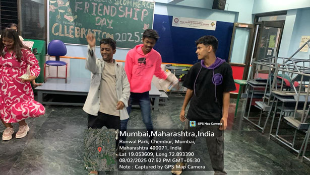 The college teachers Associate Professor Dr. Anaya Markandeya, Associate Professor Dr. Tushar Pawar and Asst. Professor Dr. Harsh Shukla along with Cultural Committee Chairperson Professor Dr. Lata Krishnan visited all the class rooms to participate in Friendship Day celebrations. The T.Y.B.Com, and S.Y.B.Com. class had arranged for a cake on the occasion which was cut by Prof. Dr. Lata Krishnan. Group photographs were taken and glimpses of the party, fun-and-frolic were captured in camera.