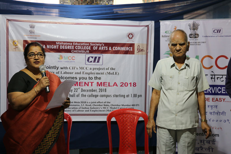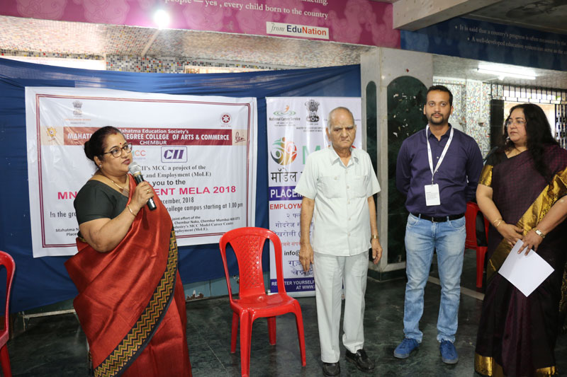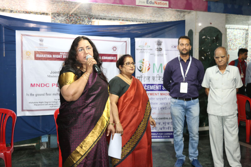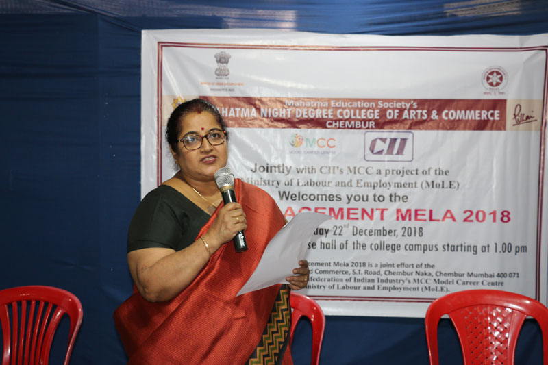 The MNDC Mela 2018 was a joint effort by the Mahatma Night Degree College of Arts and Commerce, Chembur Placement Cell with MCC Model Career Centre, CII Confederation of Indian Industries and MoLE Ministry of Labour and Employment. Principal Dr. Padma Rangan cut the ribbon and inaugurated the event. Amidst the hustle and bustle of students and company representatives were announcements of students clearing their interviews and receiving appointment letters. The slot between 11.00 a.m. to 1.00 p.m. was reserved for inhouse students. The F.Y.B.Com., S.Y.B.Com. and T.Y.B.Com. students of the college rallied around and selected a job of their choice. Each student carried with them over 20 copies of their resume and appeared for all the interviews scheduled by companies visiting the MNDC Placement Mela 2018. A lunch break was announced between 1.30 p.m. to 2.00 p.m. A counselling session for all the students was organized in room number 201 post lunch. Here the alumni students participated in large numbers as they were invited to visit between 2.00 p.m. to 6.00 p.m. Several company representatives made presentations. Food stuff a three-year old company started by Mr. Iyer is a startup that sources food stuff for hotels of all segments ranging from rom Udupi restaurants to five star hotels. The positions they offered were for marketing personnel and accounts officers. Their head office is located in Goregaon and store in Sanpada. Mr.Iyer shared his success story of how he left his cozy job to take on his business full time and was able to absorb a lot of his friends and colleagues form his previous job. The students listened with intent and were inspired.