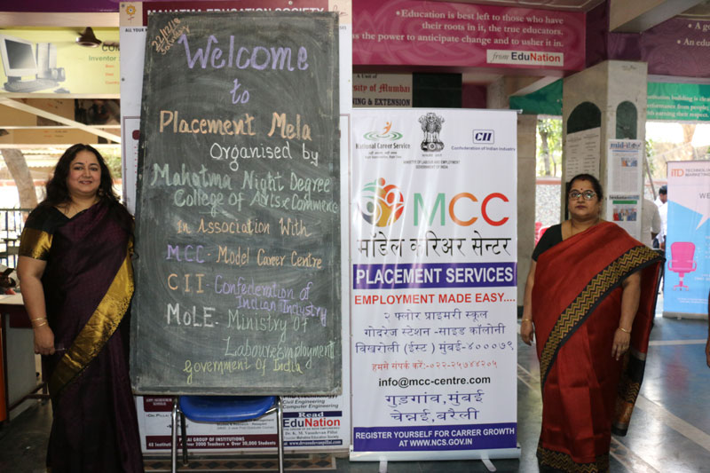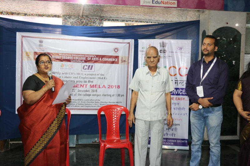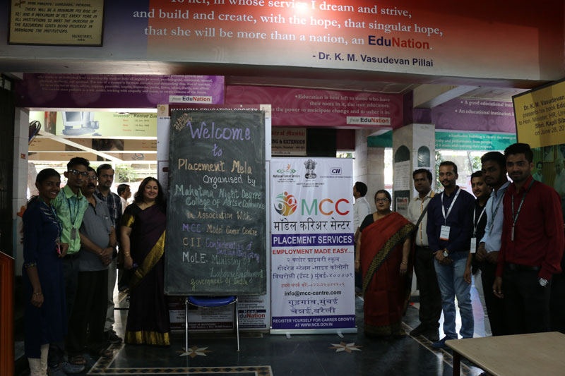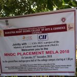 Over 100 students participated in the event and 48 jobs clinched by young students and alumni of the college. The Management, staff and students of Mahatma Night Degree College were happy to have organized and participate in the MNDC Placement Mela 2018. The event was a success. The MNDC Placement Cell incharge Dr. Lata Krishnan thanked the college Management, Principal, staff, students and Mr. Saurabh and team from MCC, CII, MoLE for all their efforts to make the event a success. She believes that it is one step taken towards moving closer to the mission statement of the college.