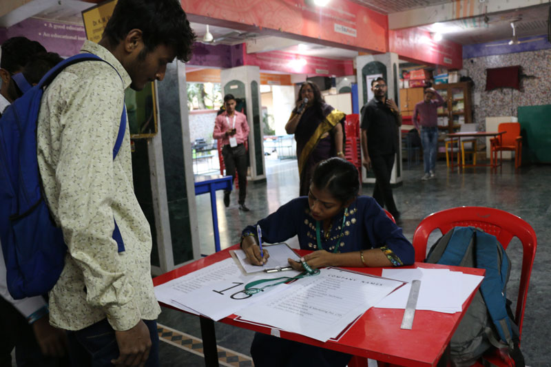 Several other companies made their presentations after which they returned to the MNDC Mela 2018 to continue with interviews. The students were now better informed and the footfall in the mela increased. The students receiving appointment letters were required to meet Dr. Padma Rangan, where she congratulated them and had a photo session with them. They were asked to share their experience about the interview they had cleared and the job they had obtained. A xerox copy of their appointment letter is maintained by the college.