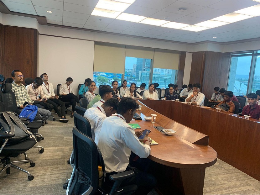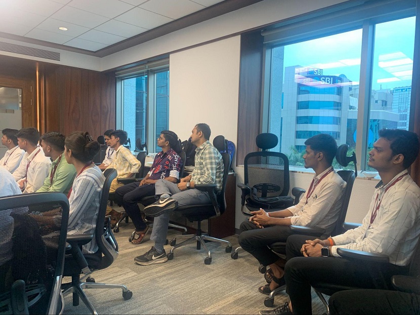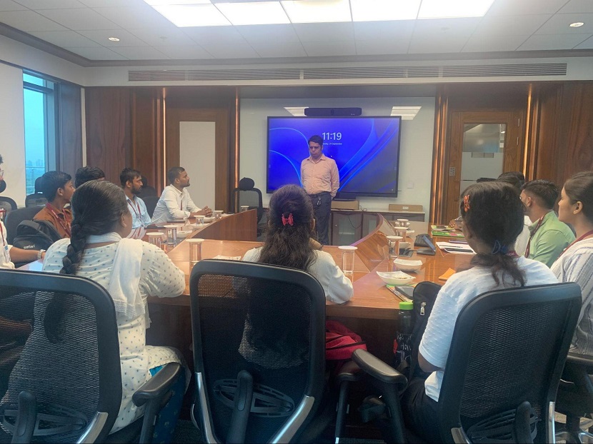 The students were happy to enter the BKC SEBI Office premises and cheerfully took group photos in the impressive vicinity. After the security check procedure they were guided to the 5th floor conference hall where the resource person Mr. Rahul Kelapure was waiting for them. The students were seated and offered water and light snacks.