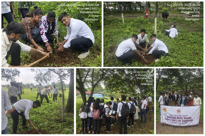 The NSS Unit of Mahatma Night Degree College of Arts and Commerce, Chembur, successfully organized a Tree Plantation Drive at a premium villa township known as “Our Town,” located near Khardi–Kasara. The program witnessed enthusiastic participation from NSS volunteers, reflecting their commitment towards environmental conservation.